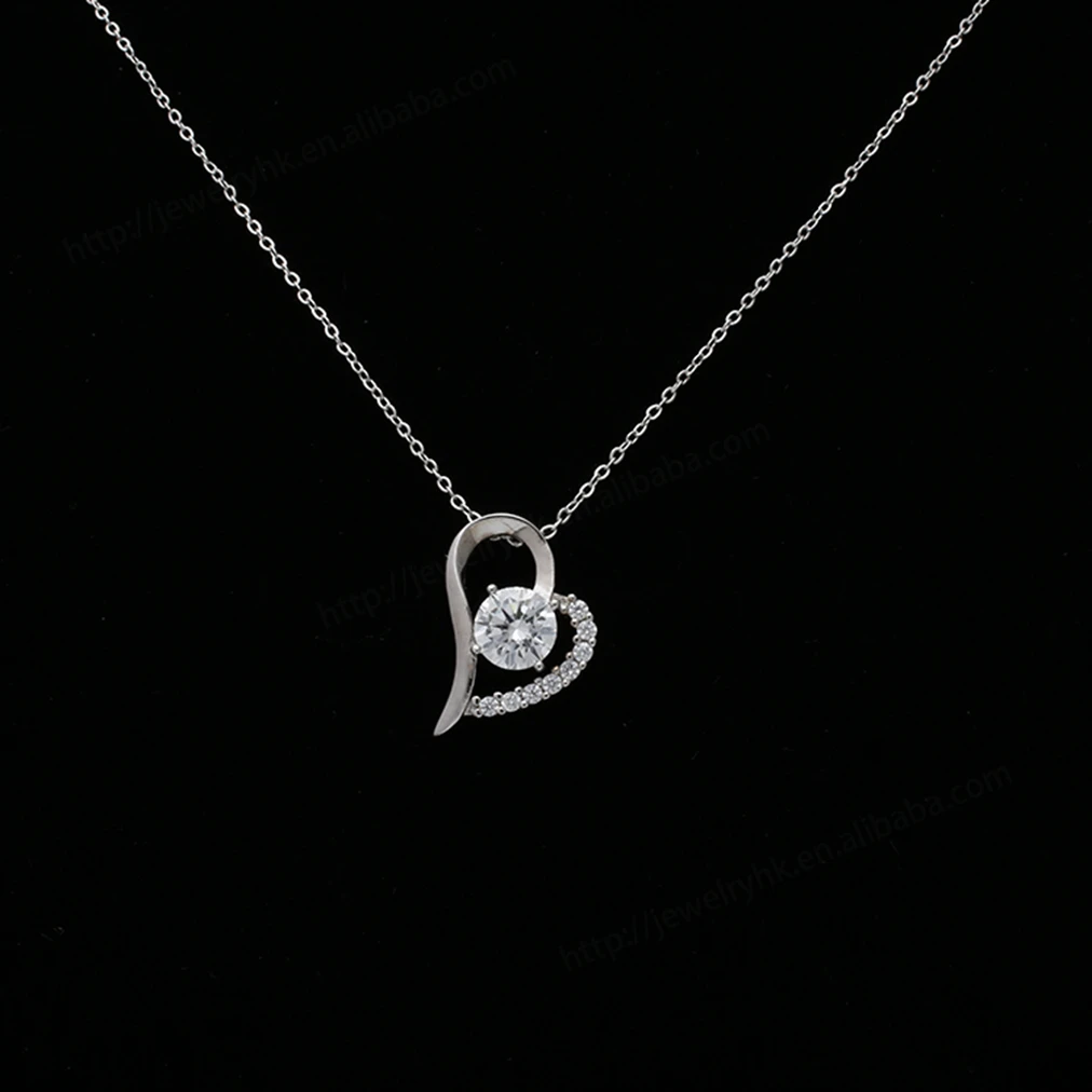 Hot Selling Women's Romantic Heart Shape Round Brilliant Cut 10k Gold Moissanite Claw Setting Necklace Pendant